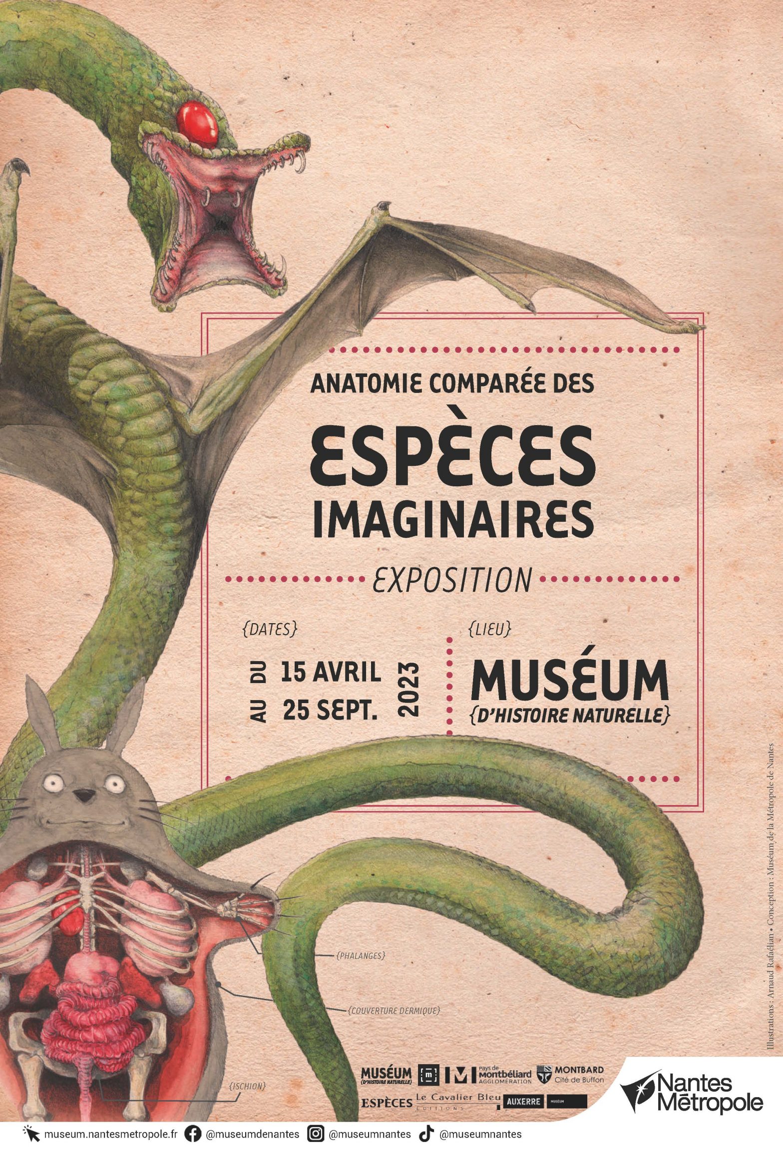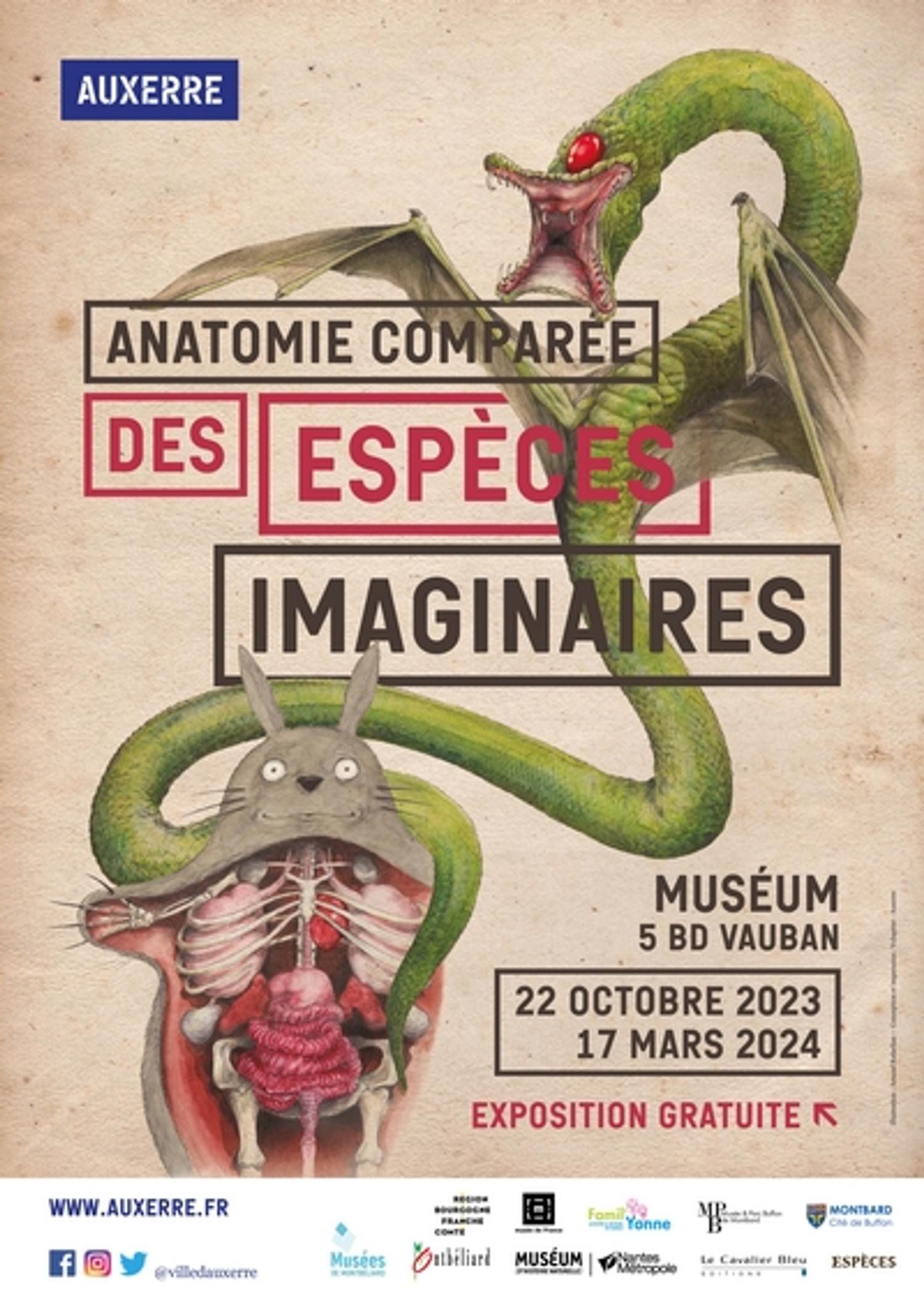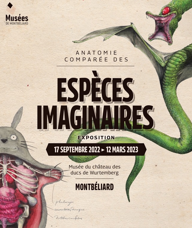 An exhibition co-produced by the natural history museums of Auxerre, Montbéliard, Montbard and Nantes, and developed by Jean-Sébastien Steyer, Emmanuel Janssens Casteels and Arnaud Rafaelian, based on the book Comparative Anatomy of Imaginary Species, in partnership with Les Éditions du Cavalier Bleu.