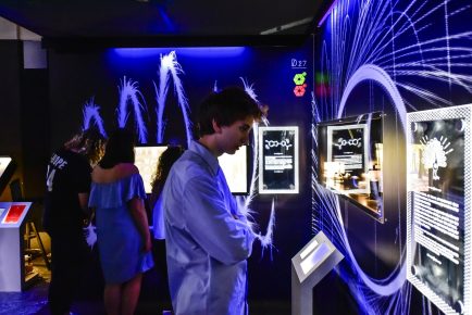 The exhibition is inspired by “Escape Rooms”, escape games in which you have to solve riddles to get out of a place. Here, the objective is the same: after being welcomed and prepared in an immersion room by a Luminopolis Master, the visitor, alone or preferably in a team, enters the City of Lights and has to solve a number of riddles in less than an hour to emerge victorious.
