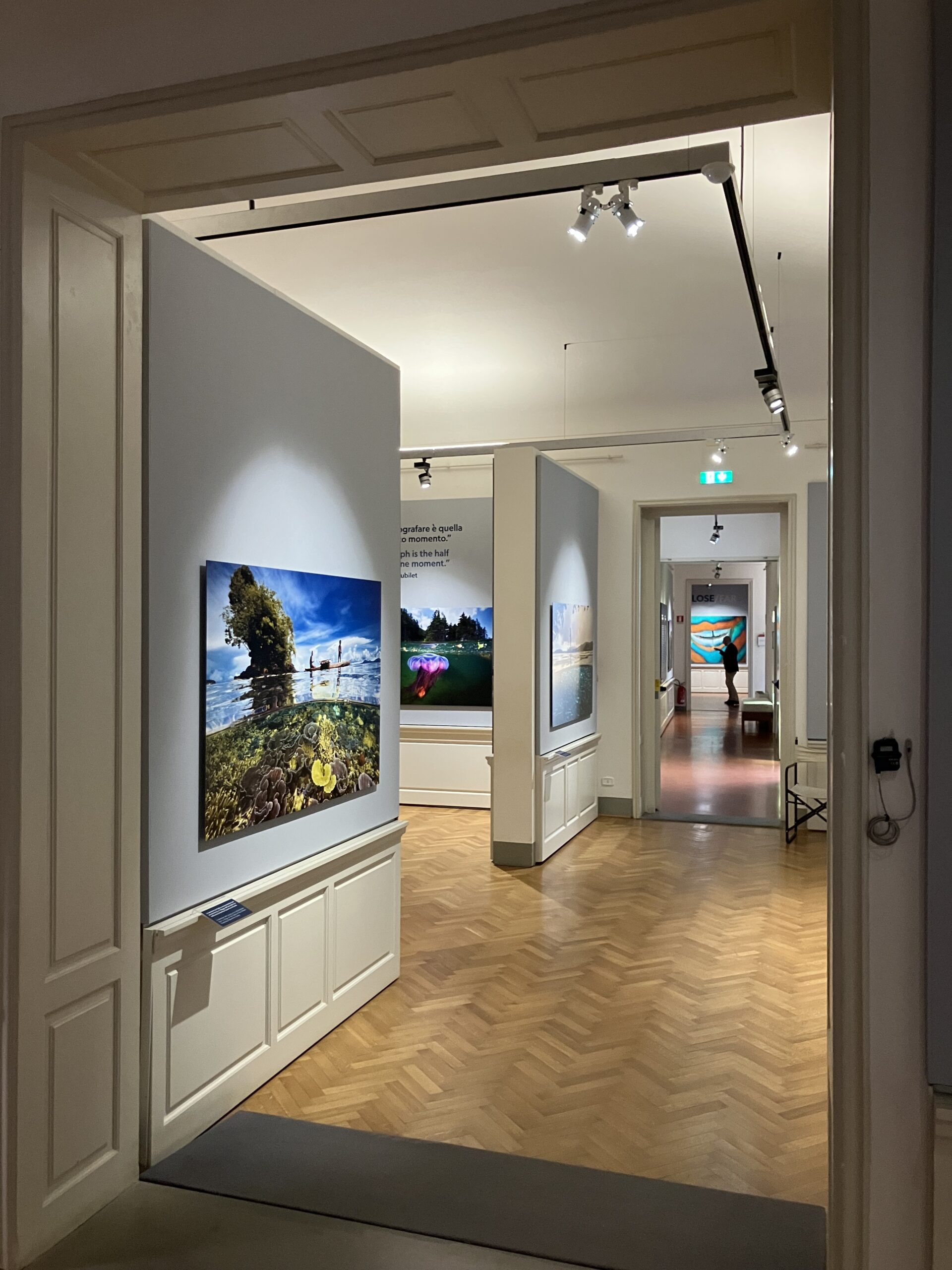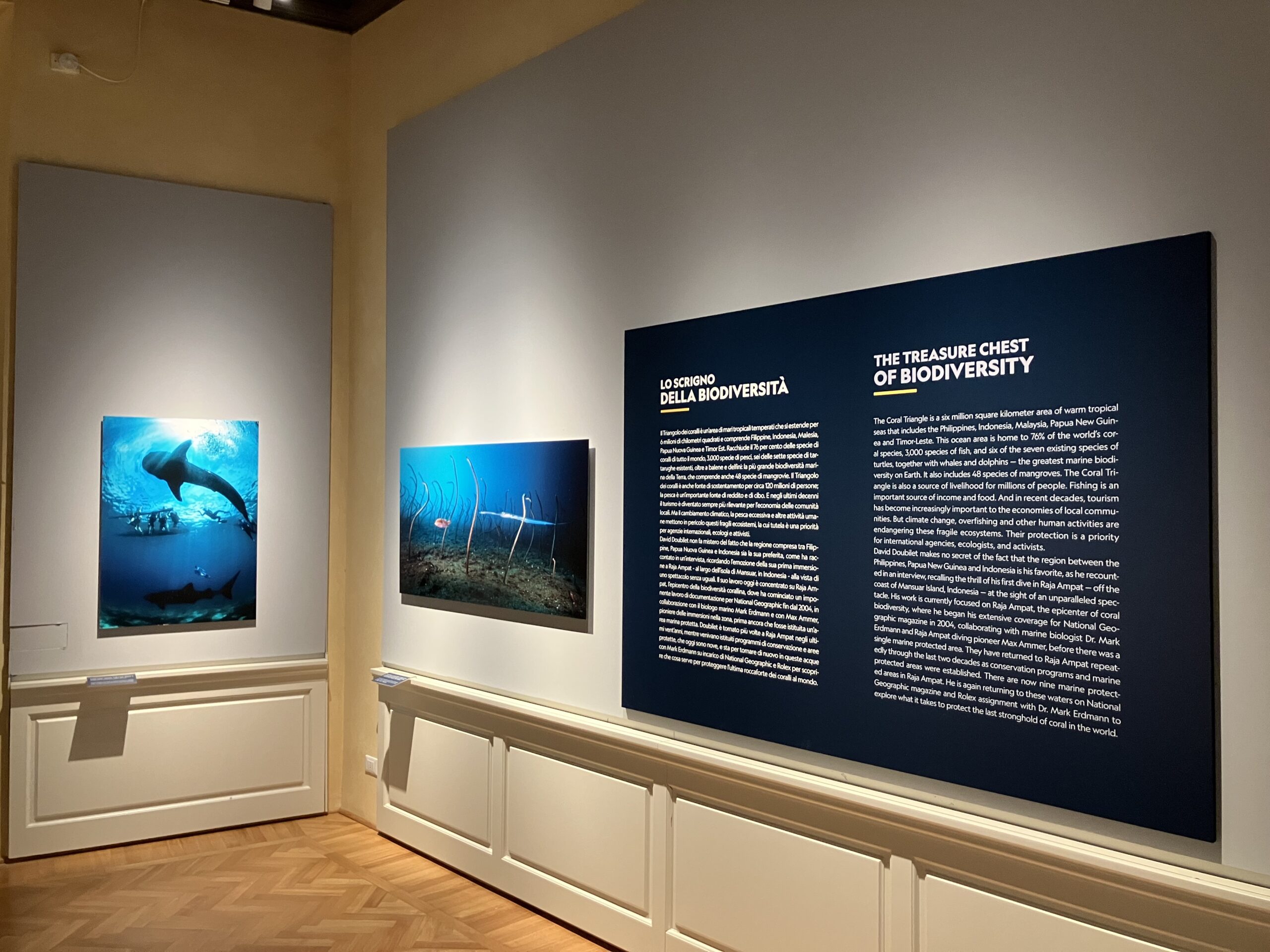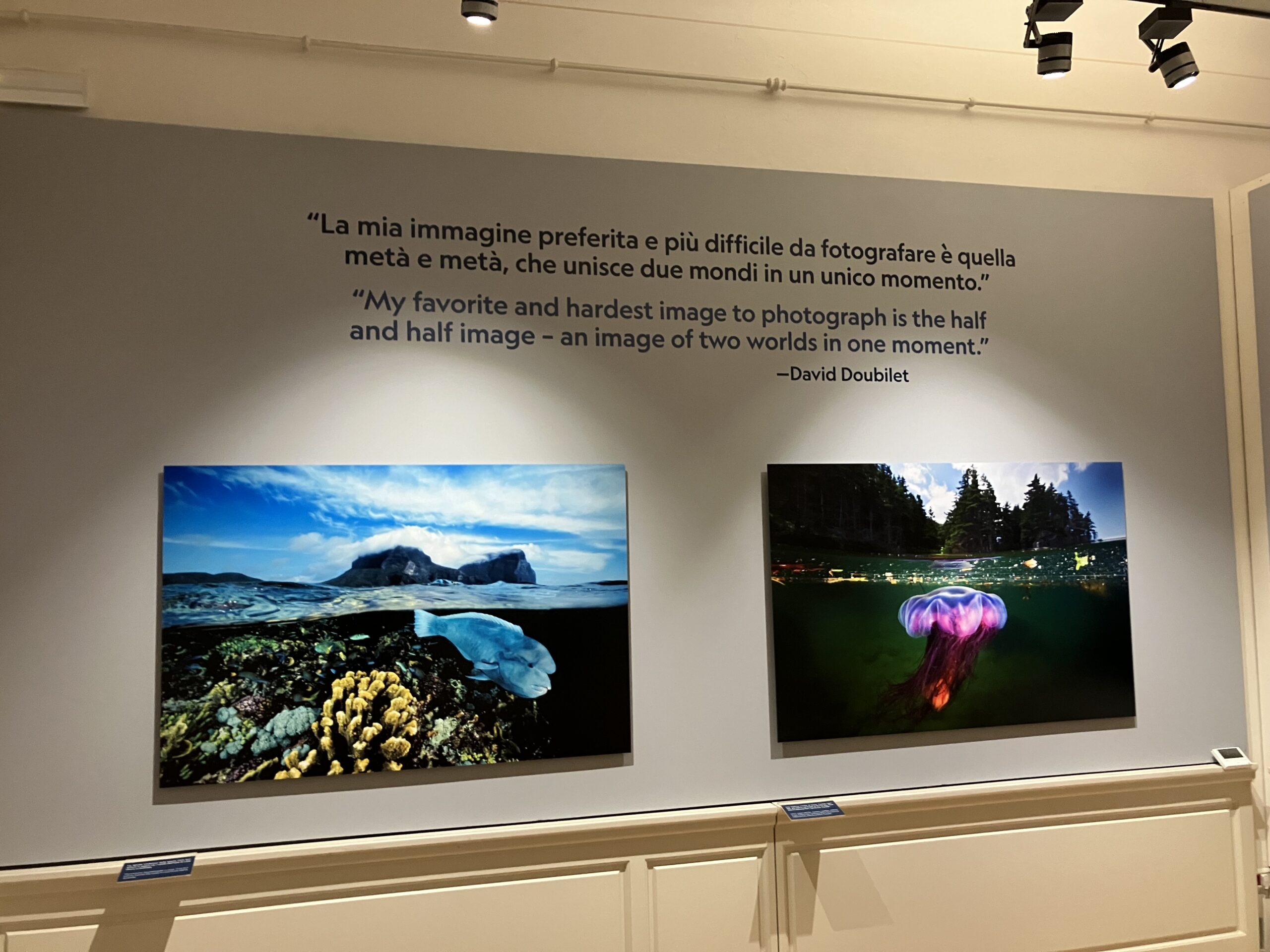This exhibition is a summary of over fifty years of diving, in which the poetry of images that border on abstract art is combined with documentation of underwater biodiversity and the fragility of ecosystems increasingly threatened by the pressure of human activities. Thus, David Doubilet is not only a world-class photographer. He is an unparalleled witness to the vulnerability of marine habitats but also to the resilience of the creatures that inhabit them. And today, his mission is to raise awareness about the protection of the oceans. Inspired by his famous technique of over/under water in the same shot, the exhibition is curated around opposites. Gallery sections include pairings such as Cold/Warm, Close/Far, Bright/Dark, all taken from his dives around the world.