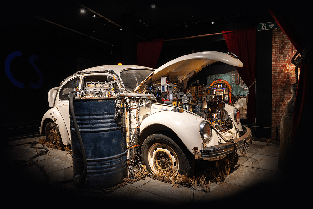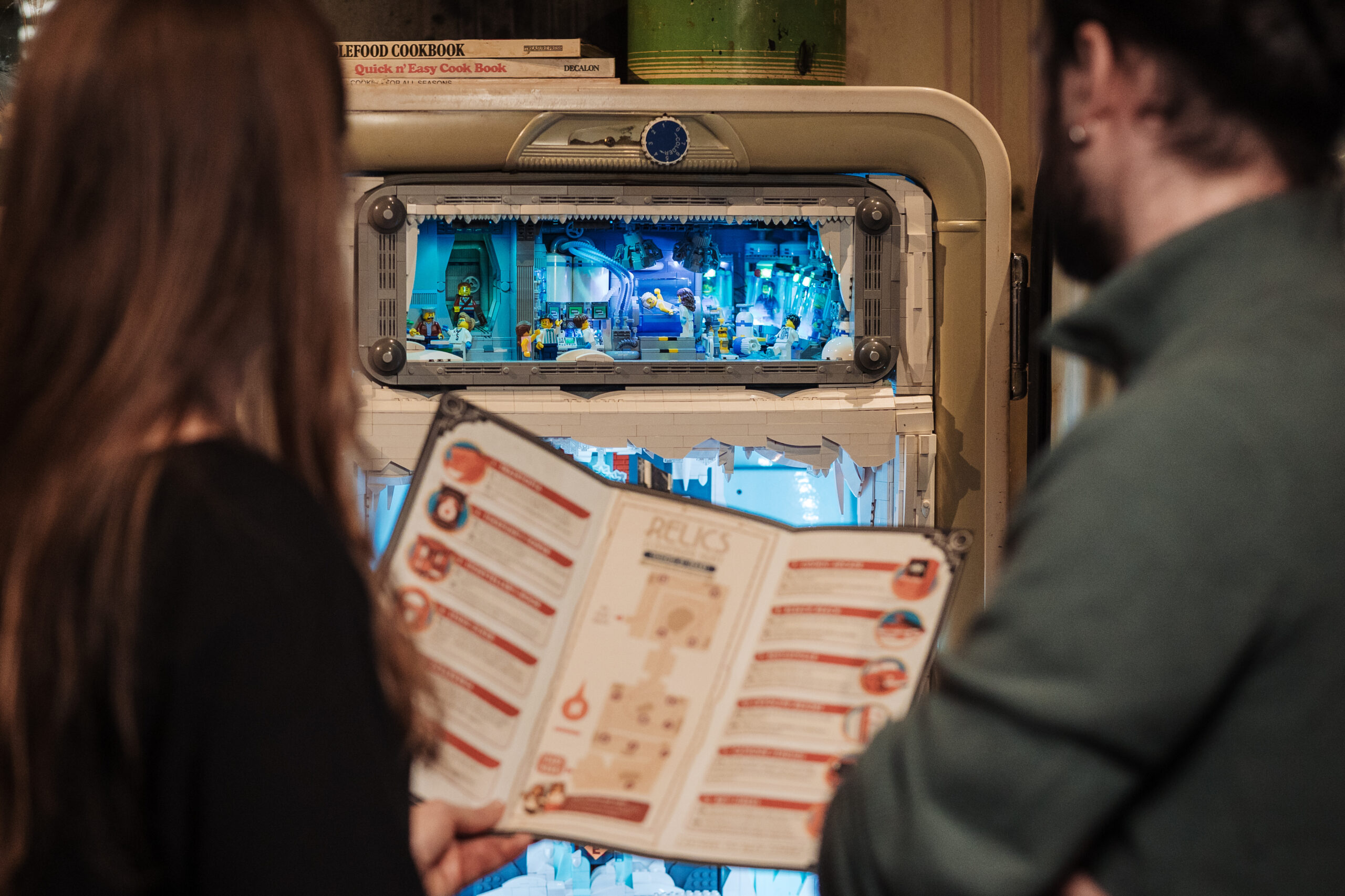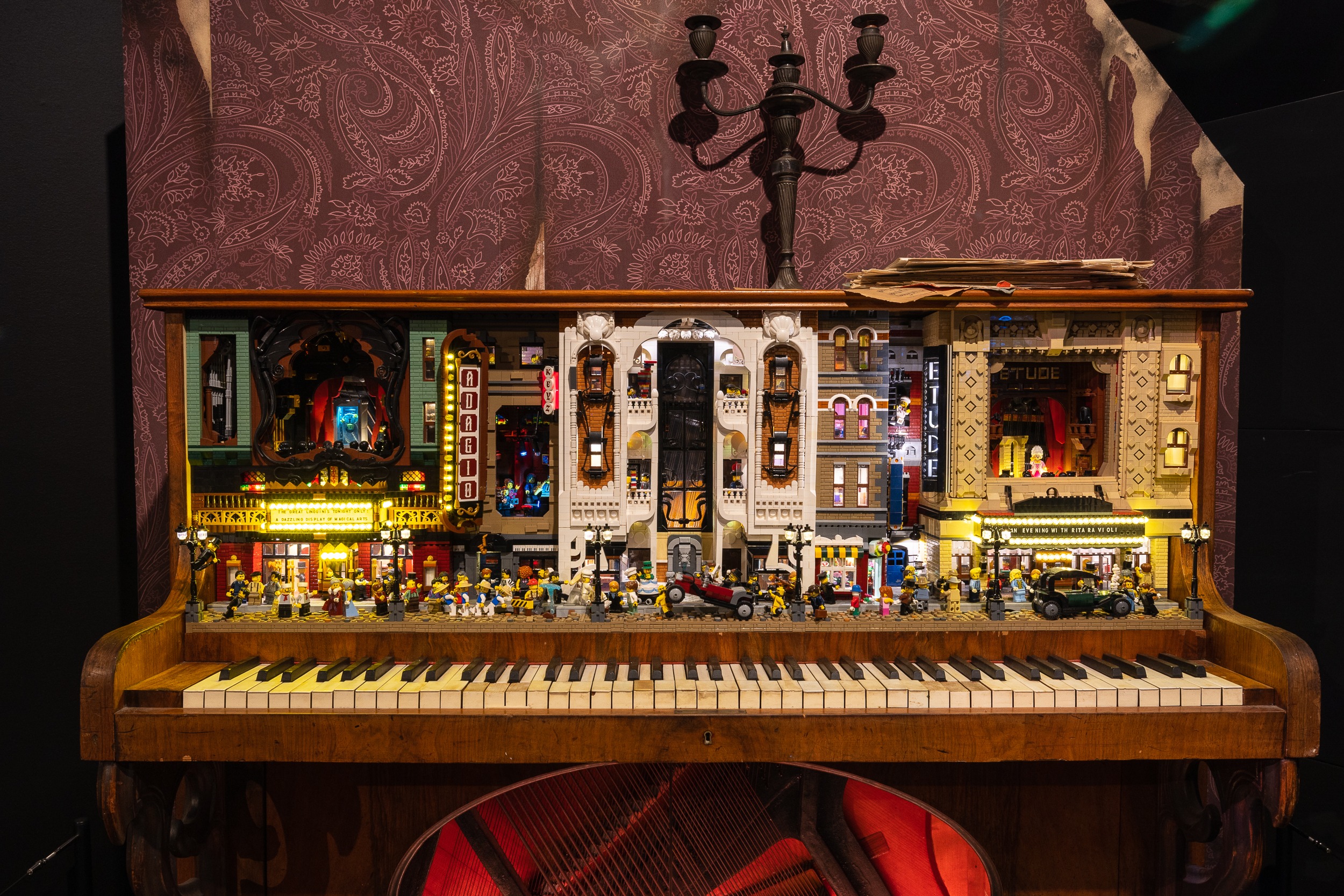 Approximately 15 x exhibits with objects fitted out with a miniature world made of LEGO®