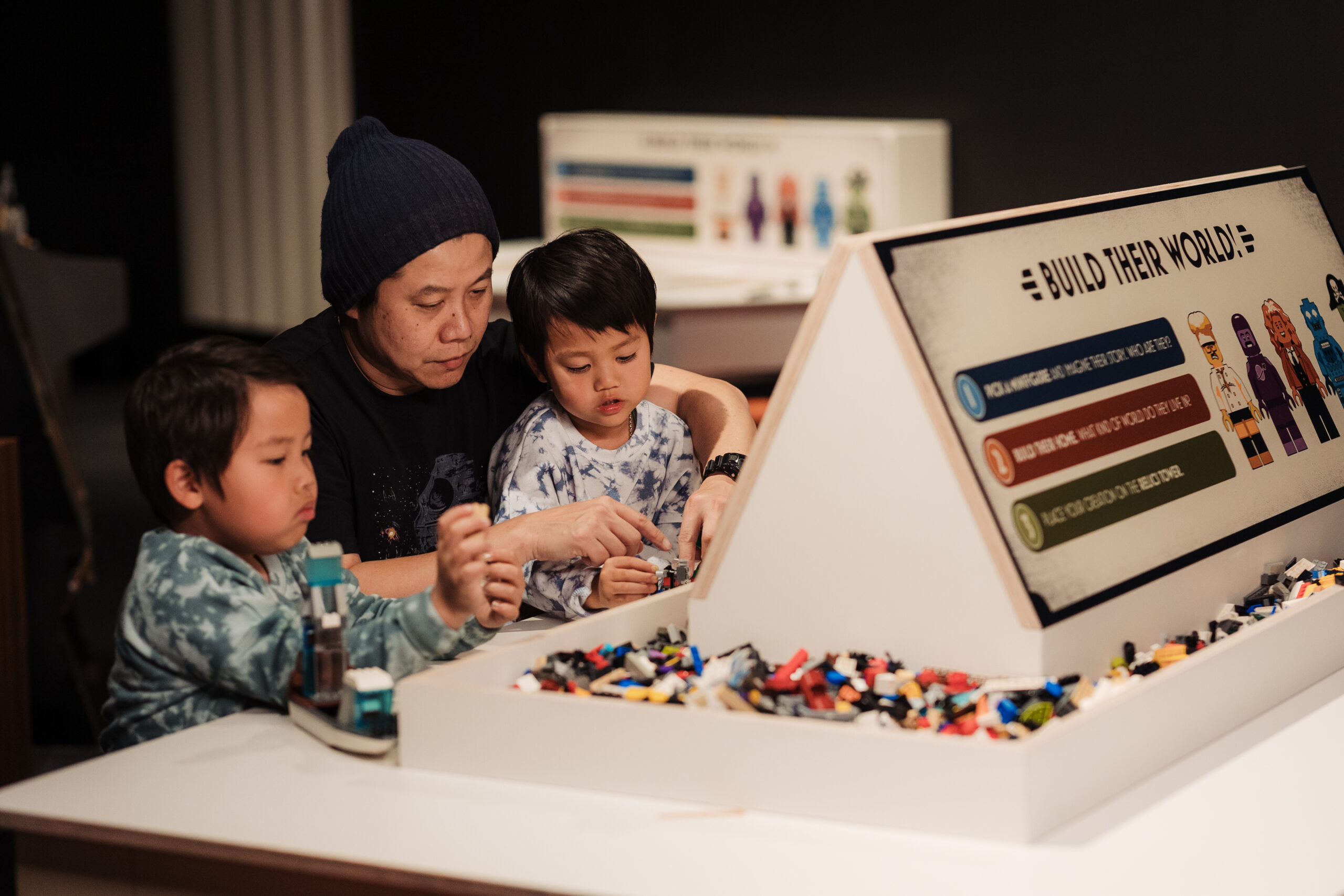 Free-standing, illuminated interpretive panels that incorporate miniature LEGO® builds to accompany each full-size exhibit