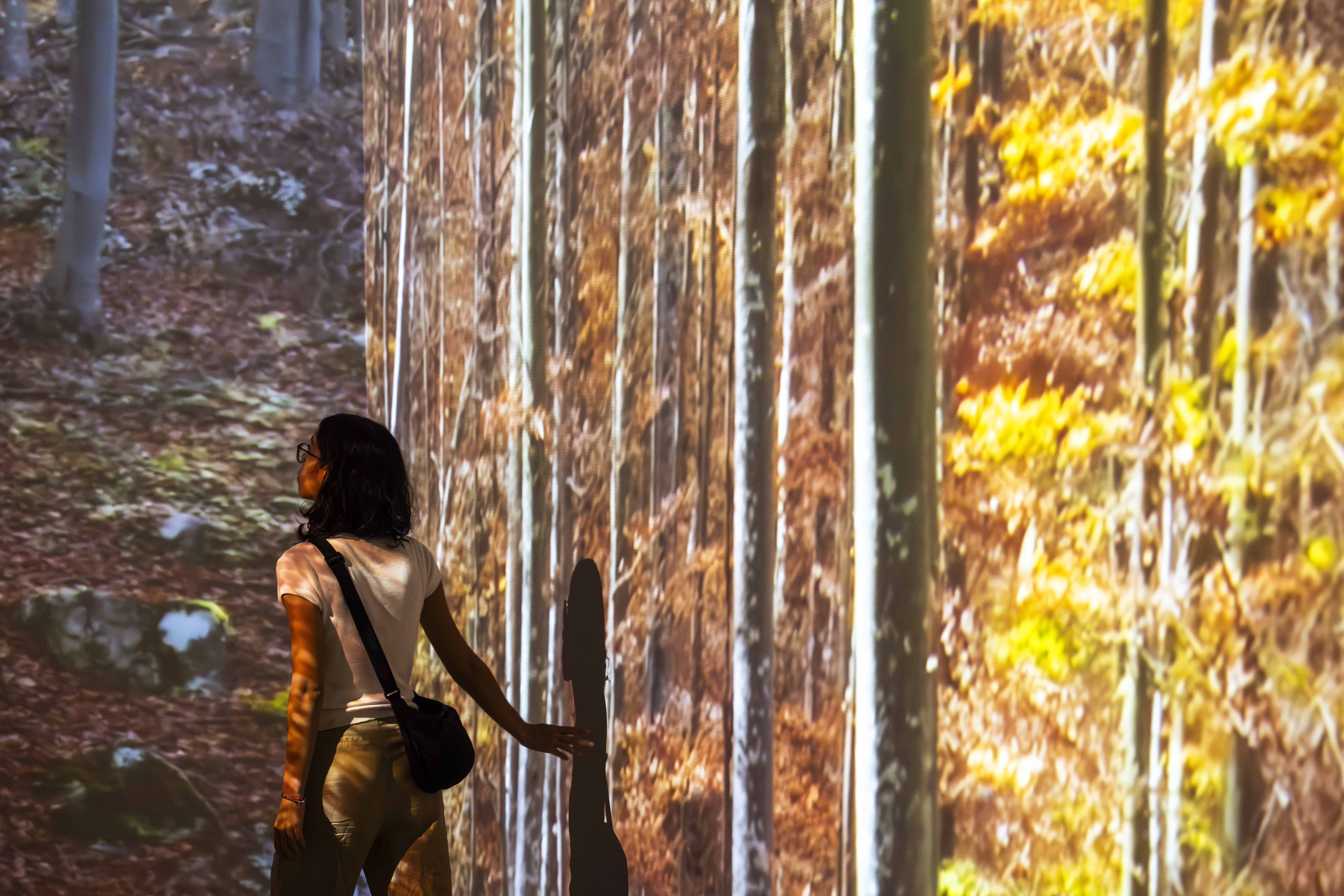 NOTE: The Root for Nature exhibit features a 70-minute narrative crescendo structured in three chapters with their own audio and visual identities and educational approaches. These chapters can be available within a full exhibit deployment or as a standalone experience. Root for Nature also includes a collection of optional elements such as educational workshops, informational panels, themed scenography, art installations and gesture-based interactivity. This exhibit is produced and traveled by OASIS Immersive Studios in collaboration with National Geographic.