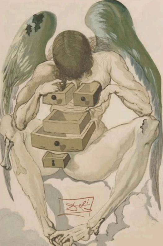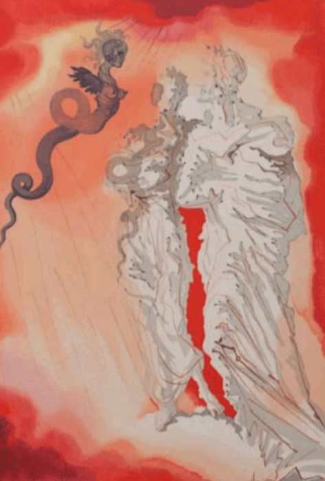 It was 1949 when the Italian Government, in view of the celebrations for the 700th anniversary of Dante’s birth, which were to take place in 1965, commissioned Dalí a colossal work that included the illustration of the Divine Comedy, a project that, due to alternating events and reasons beyond the artist’s control, underwent continuous variations, never reaching completion in the form envisioned.