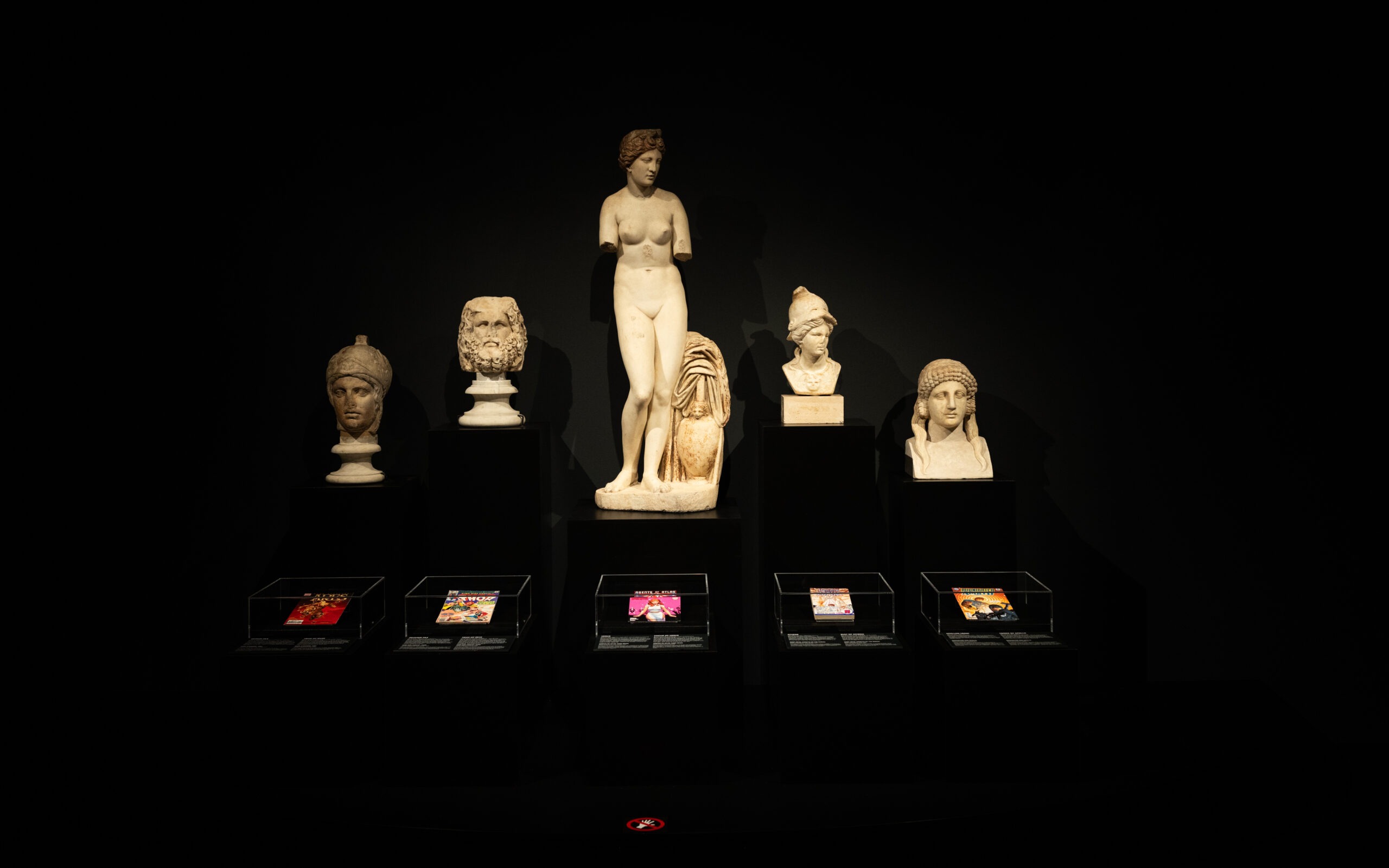 Central to our introductory concept for this exhibition is the juxtaposition of significant archaeological pieces with representations of modern, mythical superheroes in order to illustrate and illuminate their origins and connections with the gods and heroes of the ancient world.